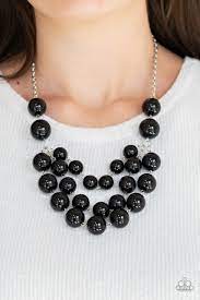 Three strands of bubbly black beads cascade below the collar, creating colorful layers. Features an adjustable clasp closure. Sold as one individual necklace.