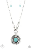 A circle of glassy white rhinestones fans out around an oversized turquoise stone, centered atop a warped silver disc. Etched with linear details, the earthy pendant attaches to oversized silver links, creating an artisan inspired statement piece. Features an adjustable clasp closure.