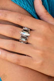 Featuring a stellar iridescence, marquise cut rhinestones alternate with airy silver marquise frames across the finger, coalescing into a futuristic sparkle. Features a stretchy band for a flexible fit. Due to its prismatic palette, color may vary.