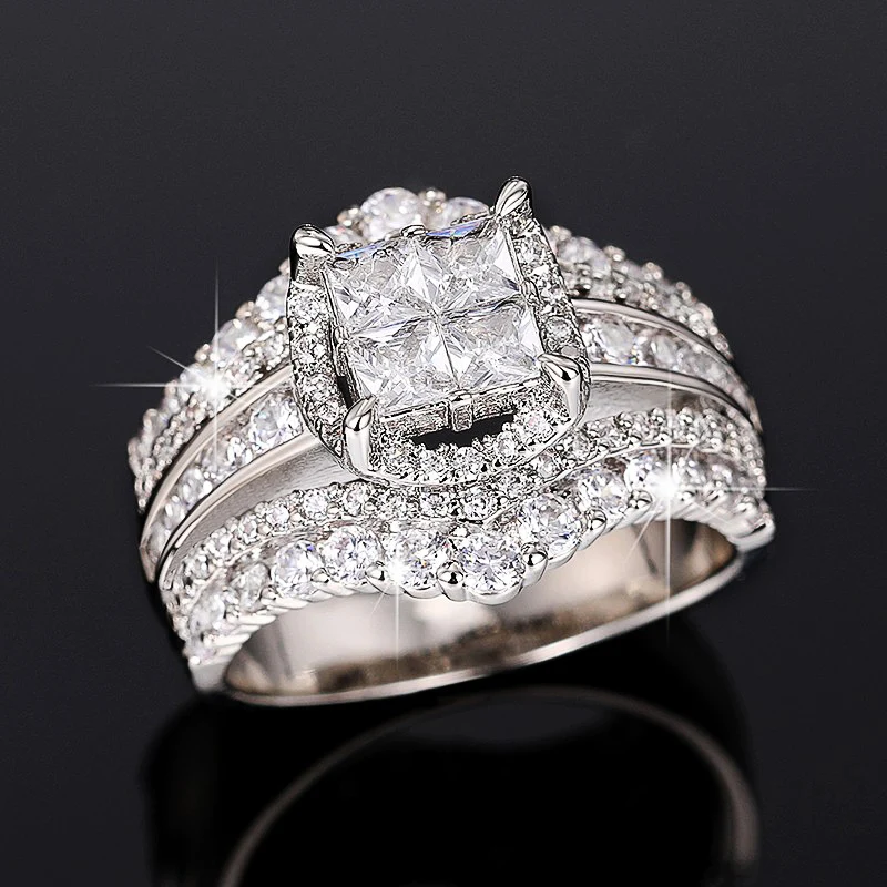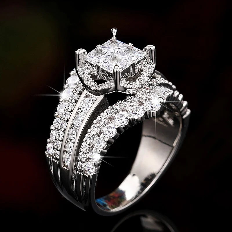 Huitan Wedding Rings for Women 2023 New Full Bling Iced Out Sparking CZ Female Rings Engagement Proposal Bands Fashion Jewelry