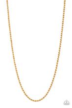 A dainty gold wheat chain drapes across the chest for a classic look.
